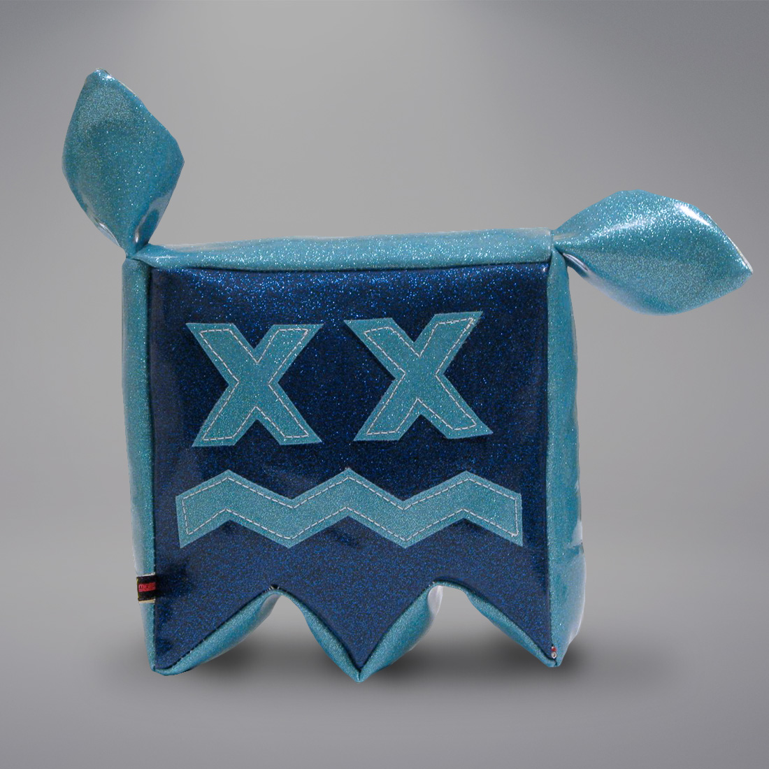 8BIT // Inky 7.5″ x 7.5″ x 3.75″ Vinyl glitter fabric, thread, fiber fill